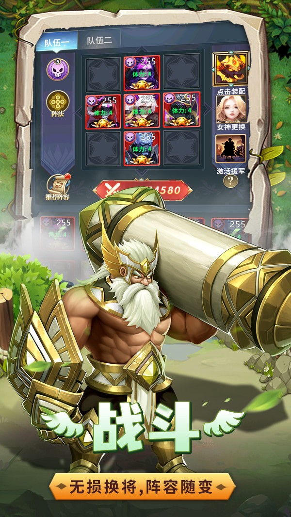 2.多种战斗阵容玩家可以任意搭配,五大阵营之间存在一定的克制关系,英雄之间也有加成效果。