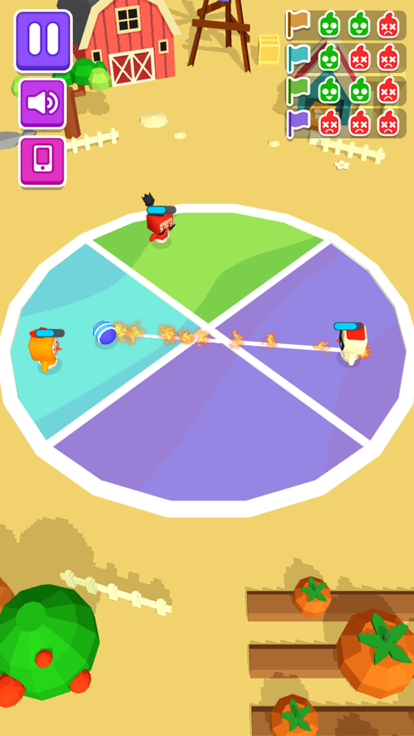 2.控制小球打击对手,经典的躲避球玩法,球触碰到对手即消除一次生命,直到血量为零淘汰。