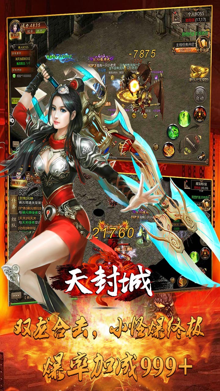 天封城BT火龙特权,一款人气十分火爆的多人热血传奇竞技游戏。天封城BT火龙特权游戏奖励多,玩法丰富,很多的等级提升后都可以让你获得更多的稀有装备武器。多模式,新玩法,更多的挑战竞技等着你,完成自己的冒险,开启不一样的战斗吧。