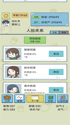 3.每次的人生都是完全随机的,你可以对人生作出不同的规划,完成各种任务,为你的带来全新体验。