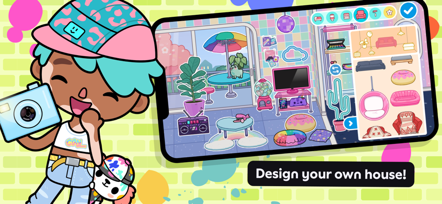 4.在托卡世界里有50多个地点、300多个角色以及125只宠物可以选择,并且还在不断更新新的物品