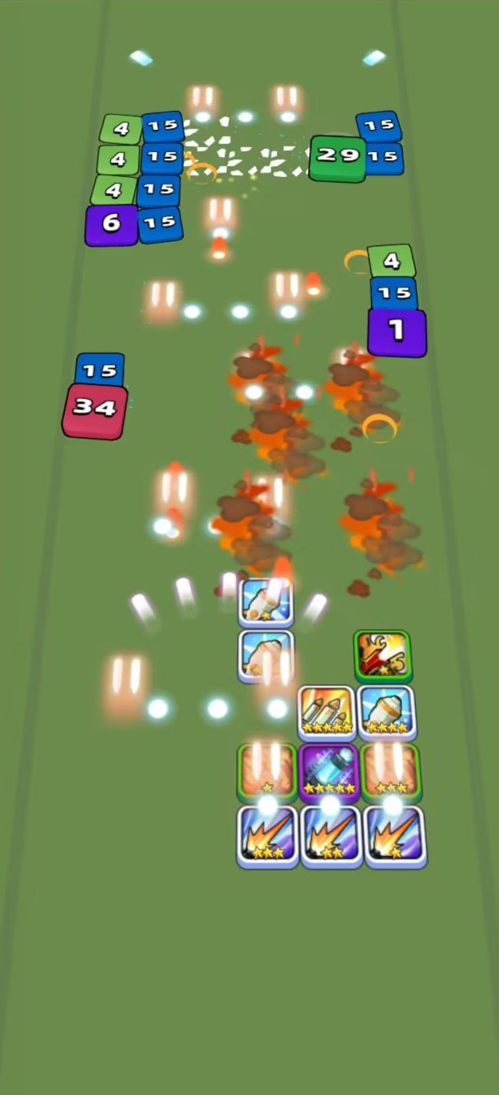 3.和消除玩法也有点类似,需要通过射击来减低方块数字直到方块彻底消除。