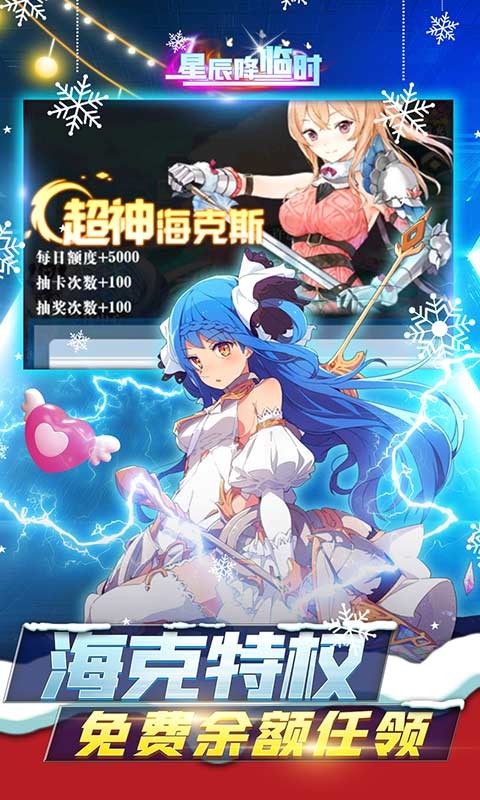 星辰降临时三千万科技充是一款二次元挂机卡牌手游,来星辰降临时三千万科技充可以和超多二次元美女贴贴,还有开服女神任务,完成即可抱走女神,最强海克斯科技免费解锁,免费余额任意领,充值礼包随便买,高资十星女神等你来宠。