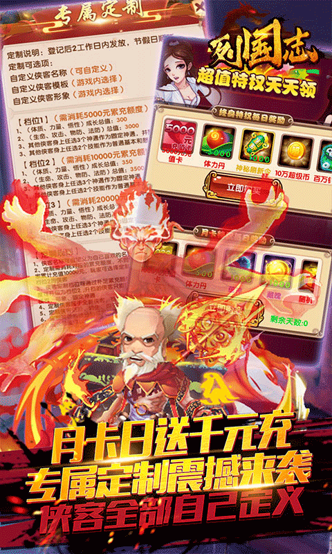 《列国志(定制超级商城)》巅峰武侠卡牌巨制,2023首选武侠策略卡牌手游,国手级原画师打造高精度武侠题材策略卡牌游戏;致敬热血经典武侠世界,一级高端影视特效,暴爽画面冲击感,畅享扣人心弦的极致对战体验,勾起你不羁的剑侠情怀。