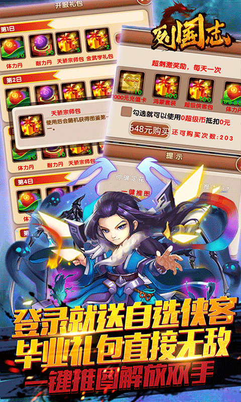3.登录就送自选侠客包,游戏内所有侠客全部任选!