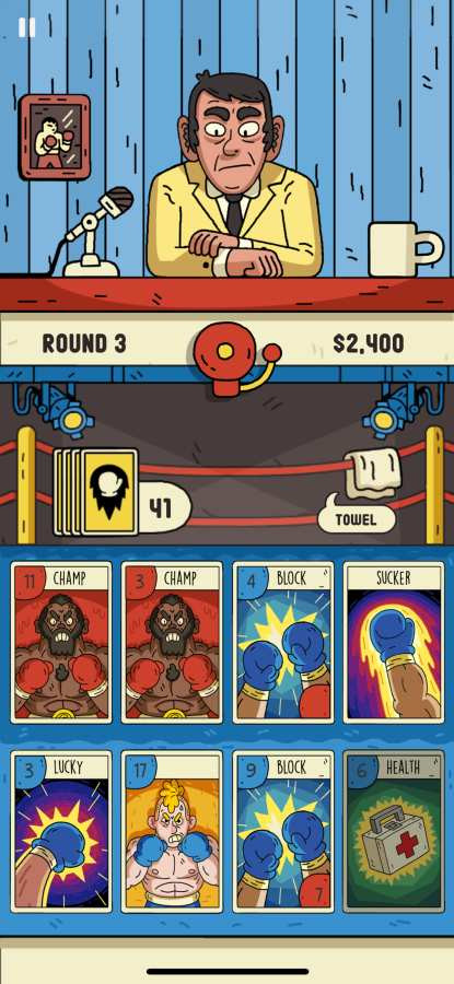 卡牌拳击是一款特殊的拳击竞技游戏,特殊的地方债与,这并不是一场动作上的拳击竞技,而是脑力策略上的。游戏为玩家提供了不一样的拳击卡牌,有角色、拳法等等,玩家需要自己排列出战,一决胜负。