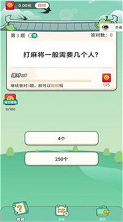 1.答题赚红包,每一题都可以获得红包奖励,连续答对指定数量的题目就能提现。