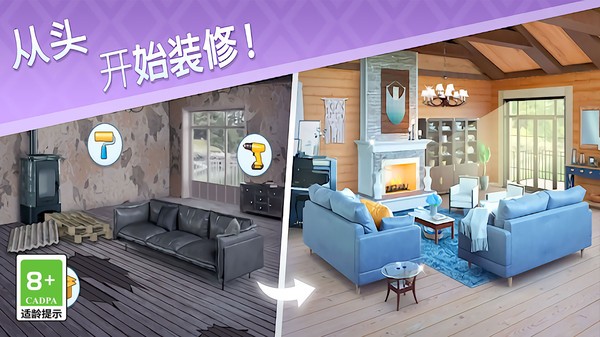 3.真实的装修设计,在家装过程中还会用到各种装修工具,有超多工具、道具可以帮助你完成家装。
