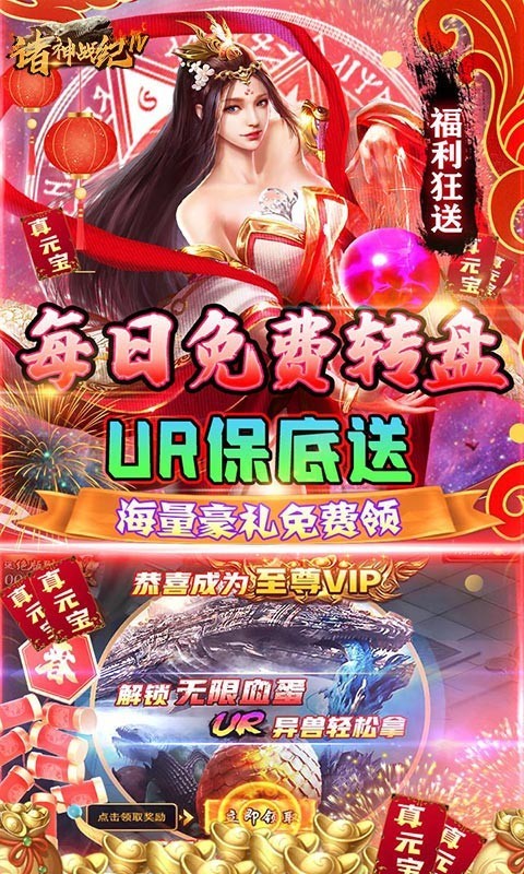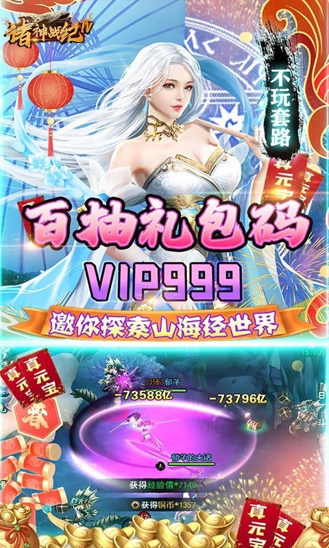 诸神战纪IV无门槛百抽是一款山海经题材的仙侠游戏,诸神战纪IV无门槛百抽以异兽和伙伴的养成为主,多种战斗玩法任意玩家选择,玩家登录就送VIP10和极品神兵,还有绝版时装可以领,每日免费转盘UR保底送,输入礼包码vip999可以领取百抽福利。