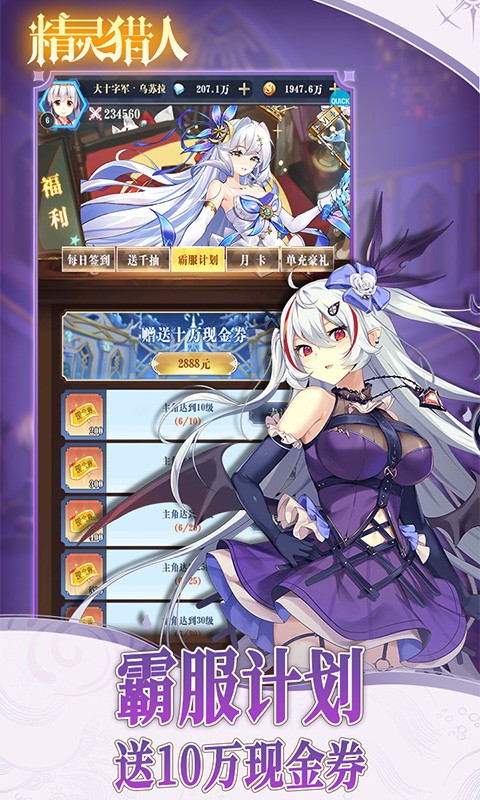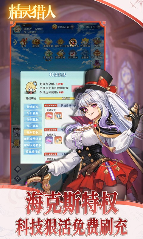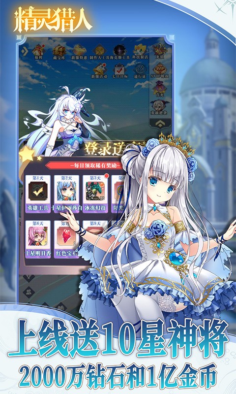 精灵猎人GM科技版是一款二次元精灵卡牌手游,在精灵猎人GM科技版中,玩家登录就送十星神将和巨额现金券,每日登录还有100连抽,签到也有现金券可以领,另外还有海克斯特权可以免费刷充,零氪玩家狠狠爽玩。