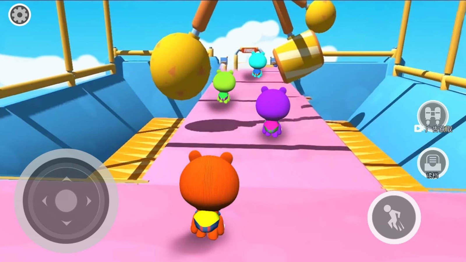 1.这是一款类似蛋仔派对的休闲竞技闯关小游戏,多位玩家匹配对局进行冒险闯关。