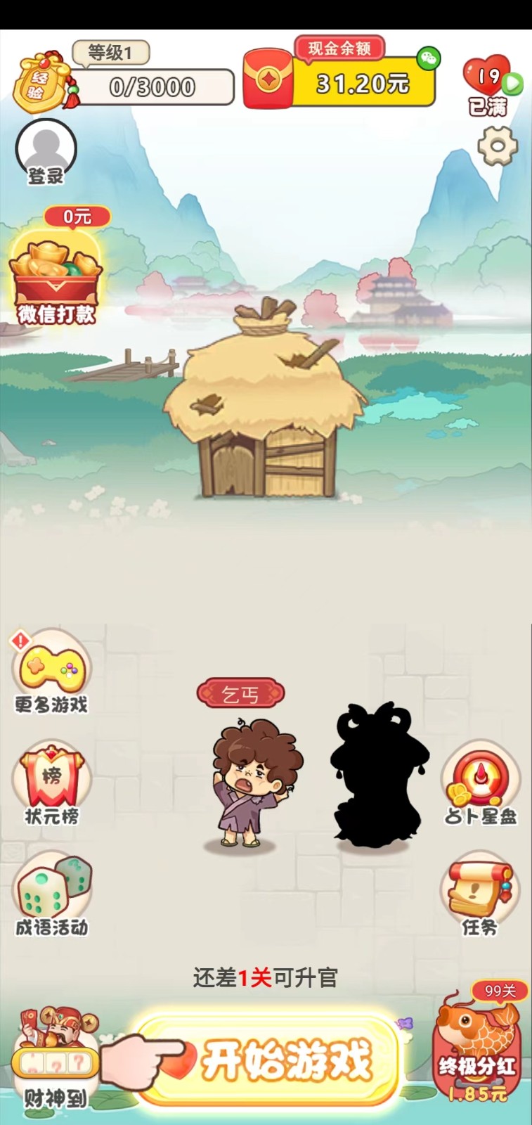 2.在完成指定关卡后就能提升角色官职,获得更多收益,另外达到指定关卡还能获得终极分红。
