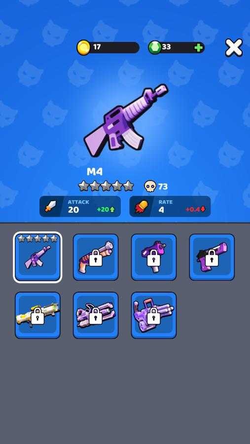 3.不断提升等级解锁星级更高的武器,星级高的枪支攻击力更强,同时火力也更充足。