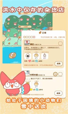 洛亚方舟是一款轻松治愈的模拟经营游戏,帮助小狐狸洛亚经营洪水过后的杂货店,为不同的动物们排忧解难。在洛亚方舟中,认识不同的小动物,完成各种订单,感受更加愉快的游戏过程。