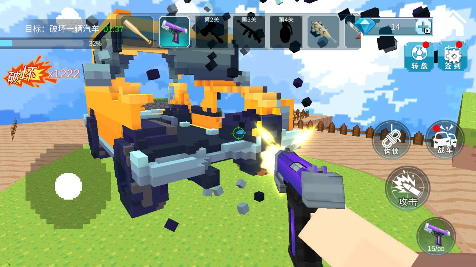 1.在这个方块世界中玩家可以抛开一切糟糕的情绪,释放自己的攻击性。