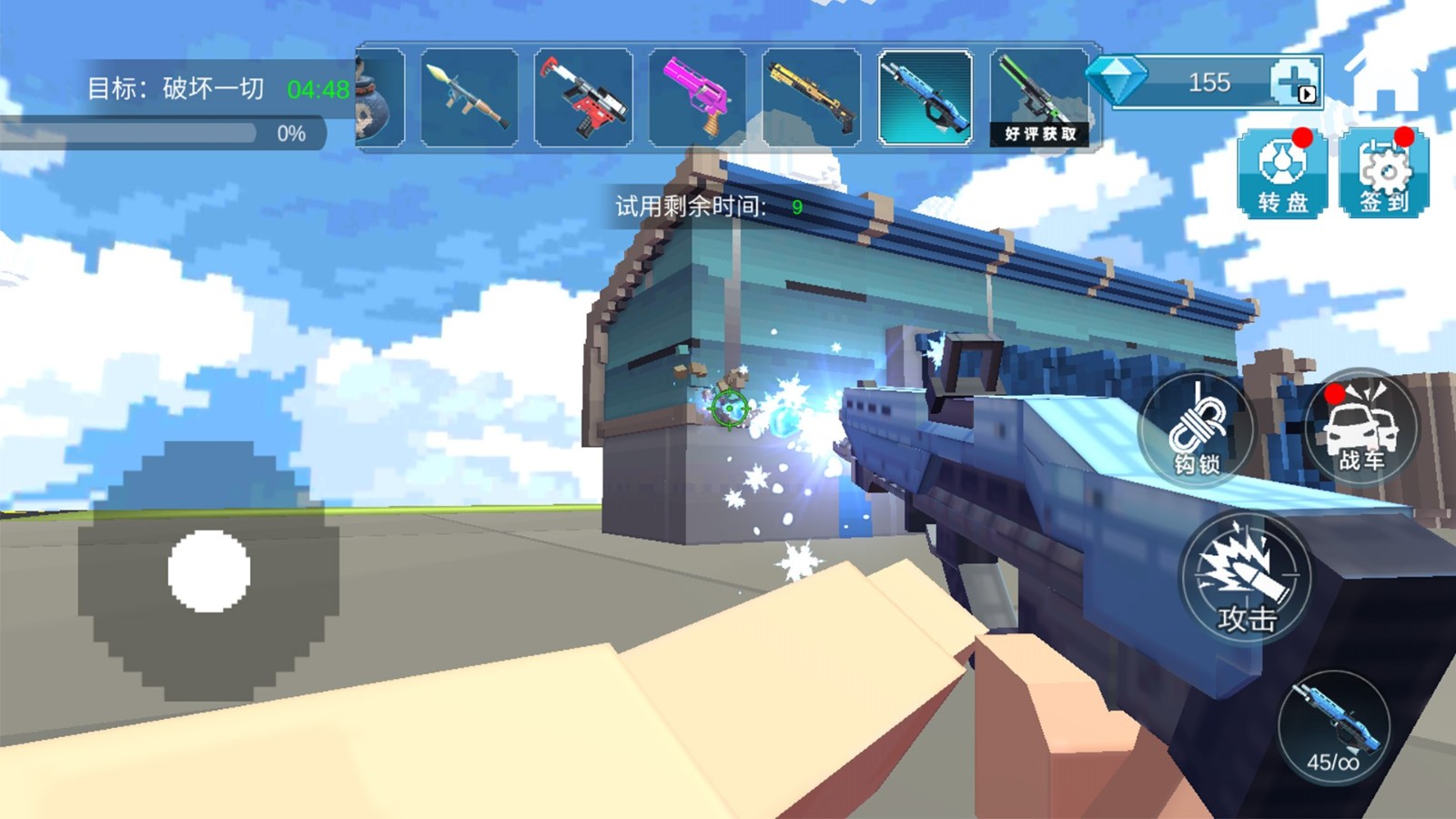1.选择任意武器进行建筑的破坏,可以通过爆破、毁灭、空投、轰炸等方式进行摧毁。