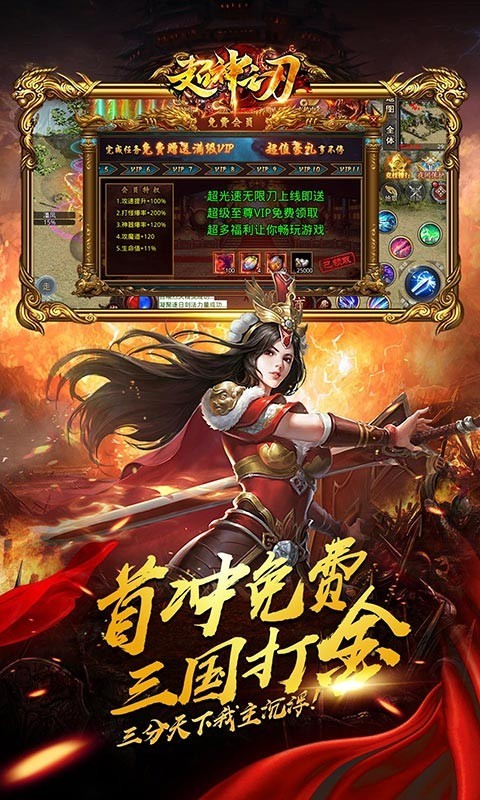 超神之刃三国无限刀是一款三国题材的福利传奇手游,所谓福利传奇就是说玩家上线直接就能免费领取至尊赞助和满级VIP,连首充也能直接白嫖,来超神之刃三国无限刀你可以体验一秒十刀的快感,变态攻速刀刀切割,满屏光柱爆爽刷怪。