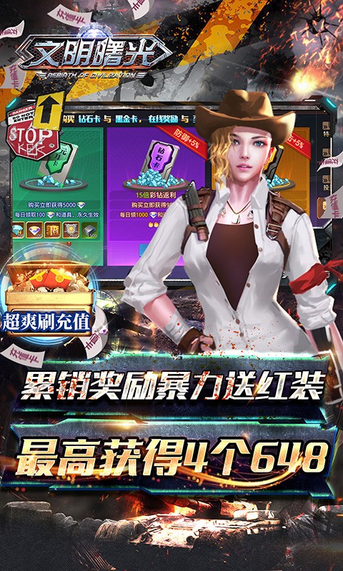 文明曙光无限送648是一款末日废土ARPG手游,在文明曙光无限送648登录就送超级福利,玩家可以无限点充648,创角还有VIP15免费送,另外还能免费激活GM特权,彩钻商城任意消费,真充可以激活充值活动,另外还有红装、时装、真充碎片等可以拿。