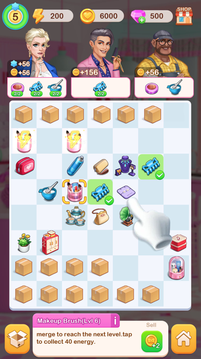 2.棋盘格趣味合成,所有的道具、物品都可以通过合成来获得,还能赚取金币,获得更多收益。
