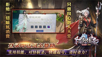 1.新人上线免费领取开天斩,逐日剑法技能,激活拾取仙灵,完成首冲领取神兵,打怪效率倍增快速发育。