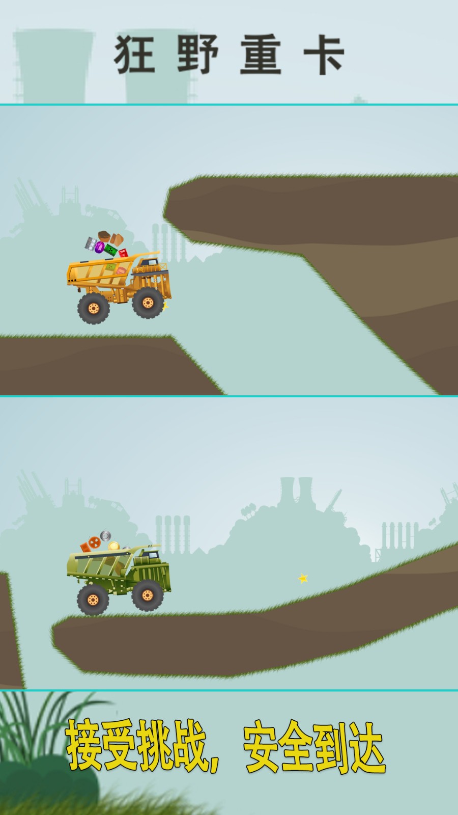 狂野重卡是一款卡通风格的休闲运输游戏。在狂野重卡中,玩家将驾驶着装载货物的小车进行任务,完成后获得丰厚的奖励,解锁更多车,安全驾驶,顺利到达终点,感受休闲的游戏过程。