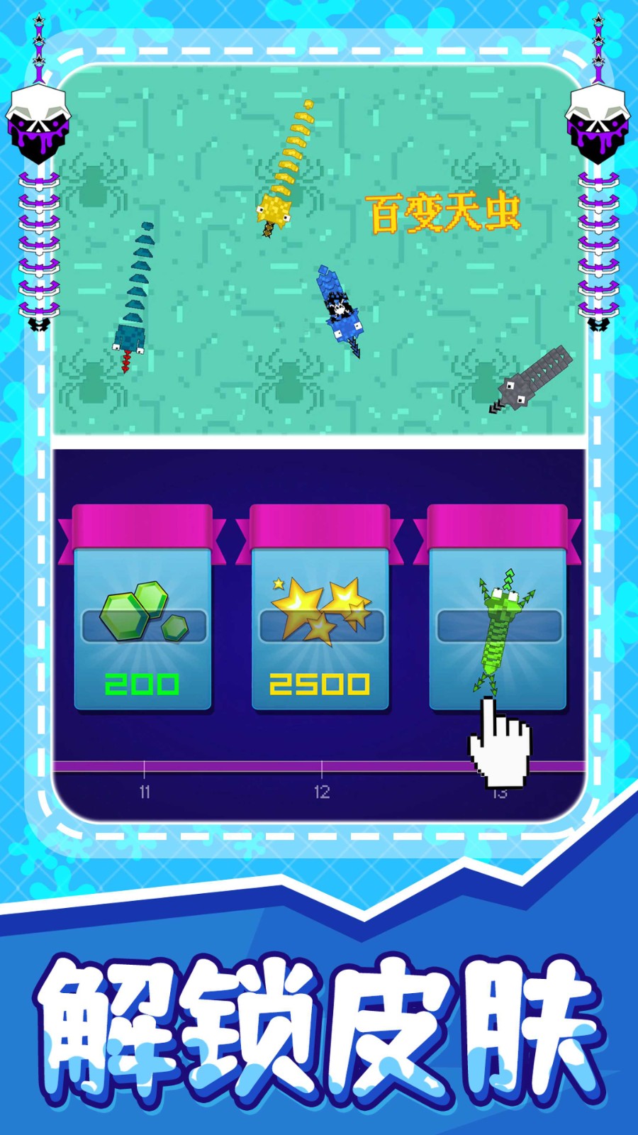 贪吃蛇之百变天虫,一款休闲益智类型的贪吃蛇冒险游戏。贪吃蛇之百变天虫游戏中玩家可以吃更多的虫子,然后不断成长,得到更多的成长等级,进化。前期先慢慢发育,然后直接变长吃更多的大虫子。游戏道具丰富,想玩的朋友就来试试吧。
