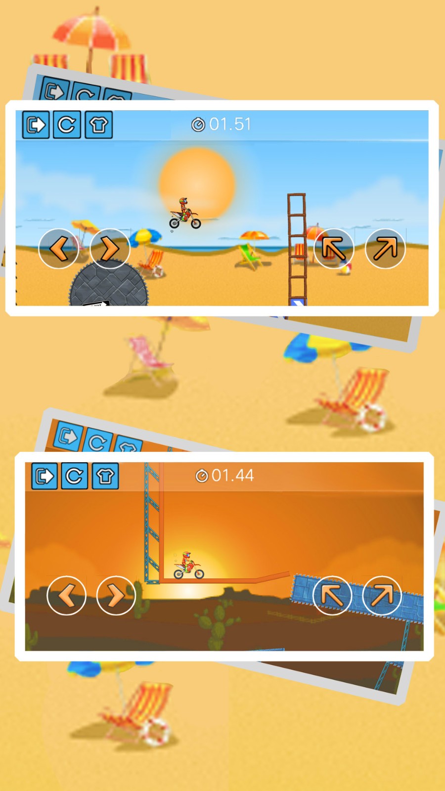 1.在丰富多彩的卡通世界中感受激情的摩托车驾驶,解锁更多的摩托车来参与游戏吧。