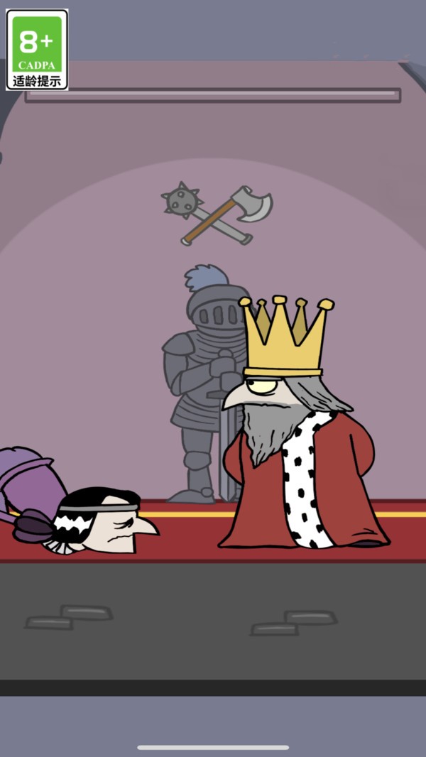 我要当新国王游戏是一款魔性闯关小游戏,在我要当新国王游戏内开启你的奇妙之旅,卡通的游戏画面风格,提升我们的手速,感受更多的欢乐的,进入到宫殿之中,小心靠近我们的国王,成功的击杀国王,并取代他成为新国王!