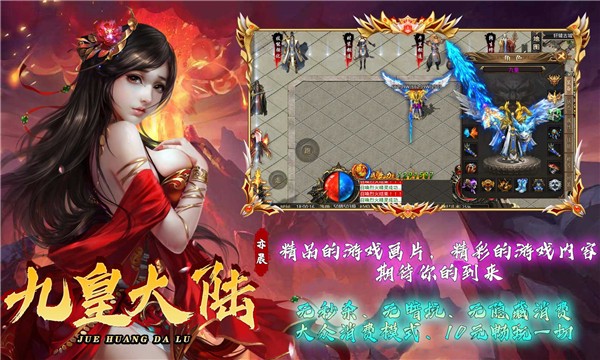 亦晨九皇大陆手游是一款热血传奇冒险手机游戏,在亦晨九皇大陆手游内开启你的竞技PK,灵活的操控我们的角色,强大的游戏BOSS副本关卡,闯荡我们的玛法大陆,操控我们的角色,成为真正的王者,经典三大职业角色,等待着你的轻松闯荡!