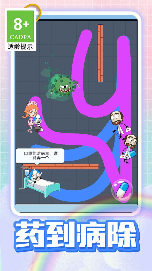 1.通过画线的形式来完成闯关,带领医生前往拯救病人成功完成闯关。