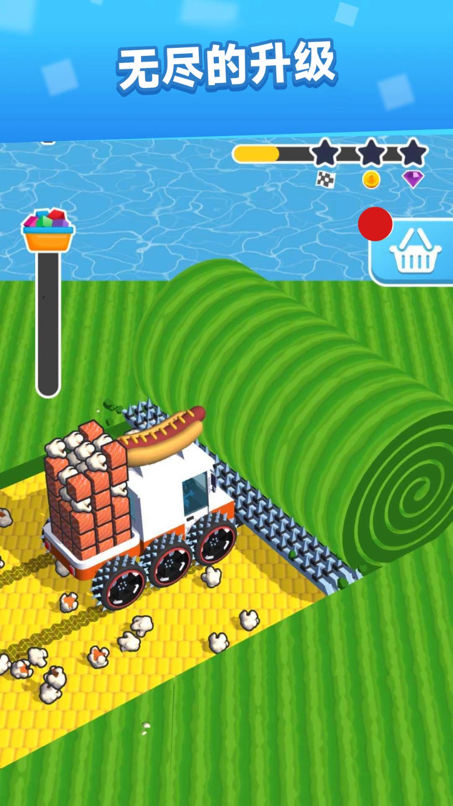 2.同时收获资源拉回来兑换钞票,拉回来越多的资源,就能兑换越多的钞票,也能让你解压。