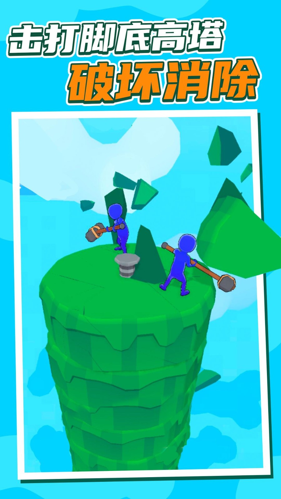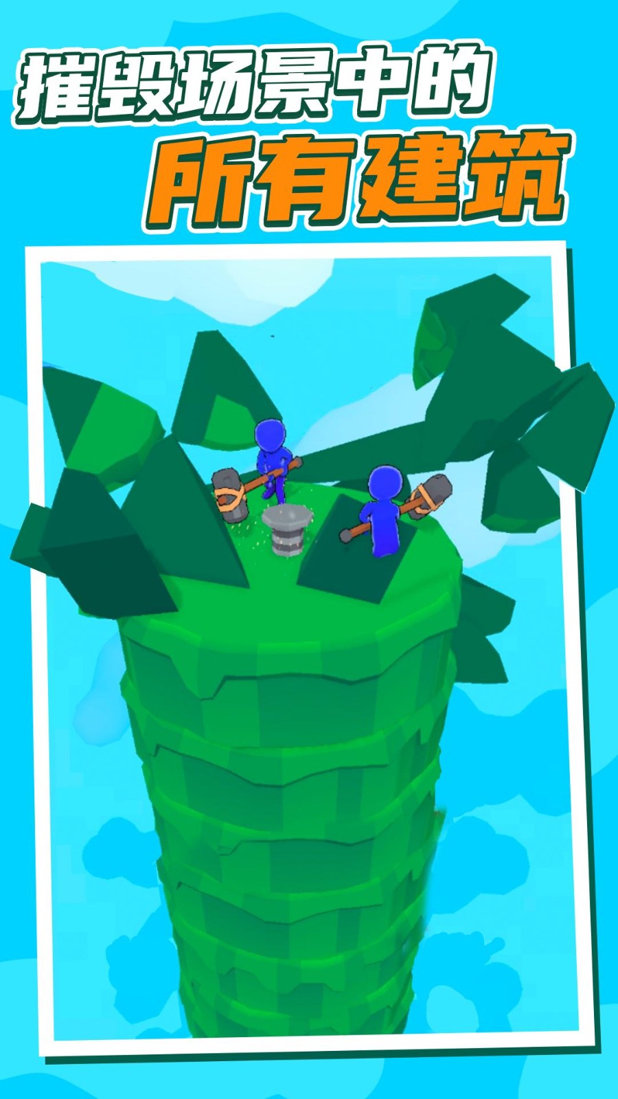1.高塔有很多层,一层层的往下面锤,摧毁场景之中的所有建筑,让你的压力释放。