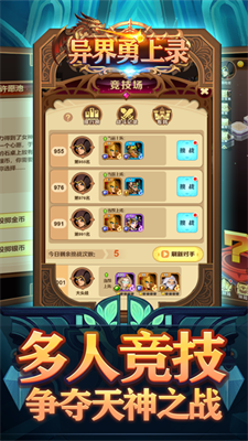 异界勇士录是一款放置卡牌策略冒险游戏,招募天神,自由组队培养,在不同的关卡中进行冒险挑战,完成任务,享受刺激冒险。在异界勇士录中,各种玩法随心选择,轻松放置挂机,完成各种挑战。