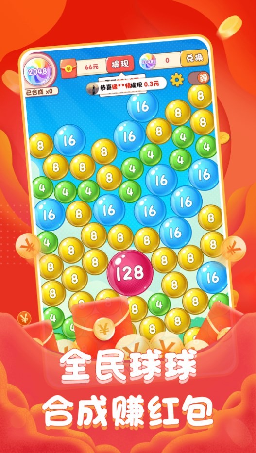 全民球球红包版是一款高福利的消除合成题材手机红包游戏,在全民球球红包版内不断的开动我们的大脑,开启我们的消除挑战,不断的合成我们的数字,尽情的享受更多的欢乐,完成不同的任务以及签到,即可领取丰厚红包!