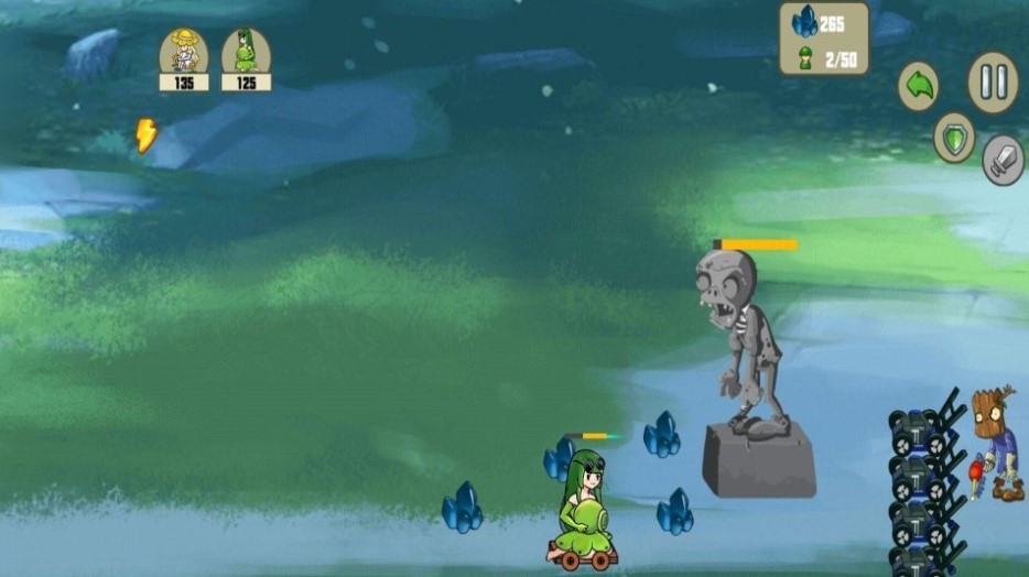 这是一款pvz类型的策略游戏,游戏场景设定在一个小镇上,玩家需要种植各种各样的植物来抵御不断袭来的各类丧尸,游戏中有多种植物,比如可以产生阳光的向日葵,可以让玩家种植更多的植物,豌豆射手是一种攻击性植物,可以发射豌豆来攻击僵尸等。