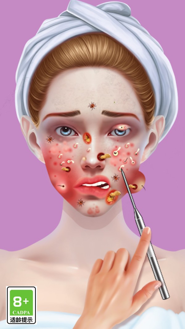 1.这是一个非常解压的面部清洁美容小游戏,玩家可以亲手操作来清楚各种污垢。