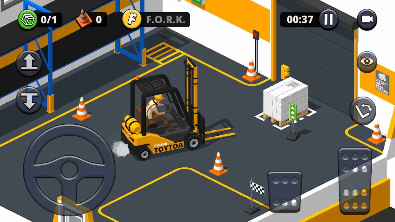 1.真实的叉车驾驶模拟,完全由玩家进行操控和把盘,方向和刹车油门来控制叉车的行动。