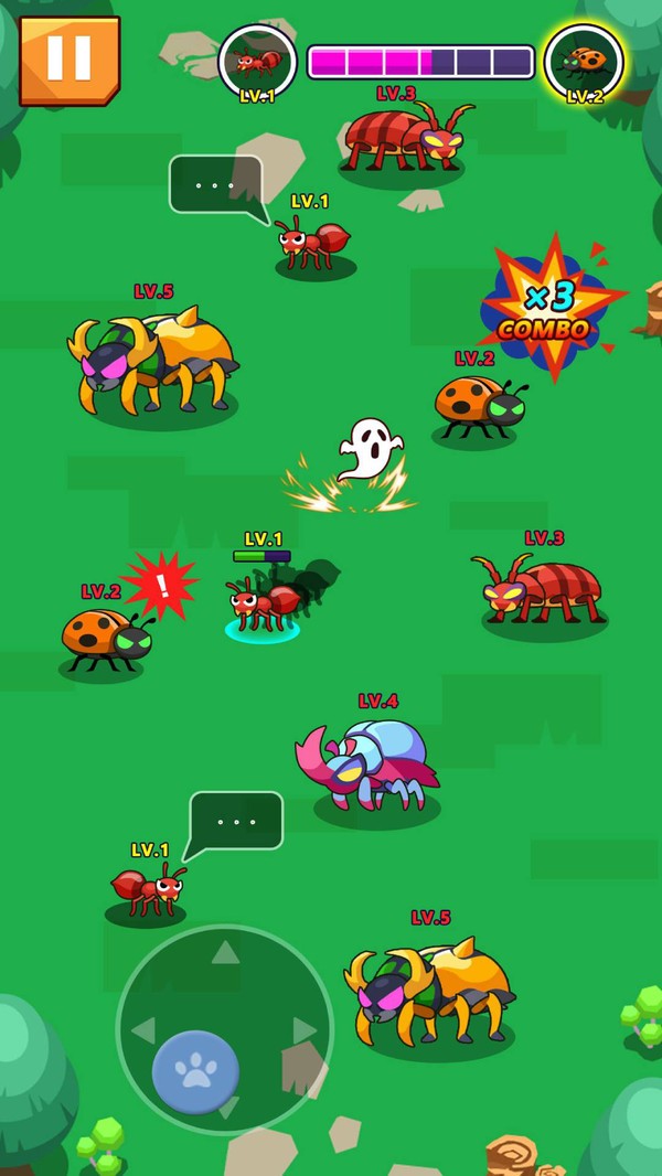 1.从最低级的蚂蚁开始,在危险的世界中存活,并且不断吞噬蚂蚁来提升等级。