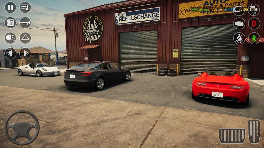 2.选择不同汽车,并使用升级和改装来提升汽车的性能,让你停车的实力更加强大吧。