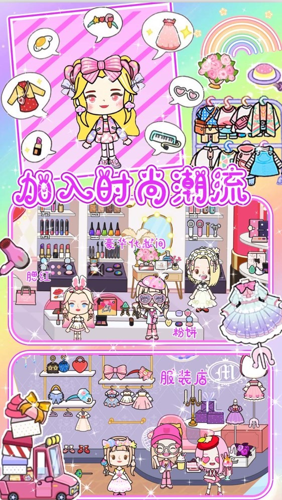 1.游戏画面采用半3D视觉效果,展现一个小镇的世界,玩家可以随意沉浸在世界中;