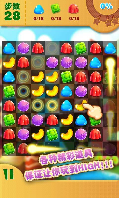 超甜的消除类游戏,人气消除类游戏,一根手指就能玩到底,玩法更加灵活多变,而且这款游戏的画风梦幻甜美,玩起来非常轻松,如果你喜欢可爱的消除类游戏,那就一起来触摸糖果大战吧。