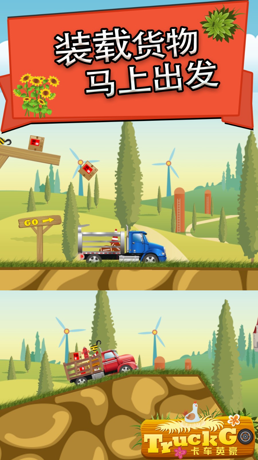 2.装满货物的卡车穿越坎坷道路将货物运送到市场,将货物运送到终点,获得奖励。