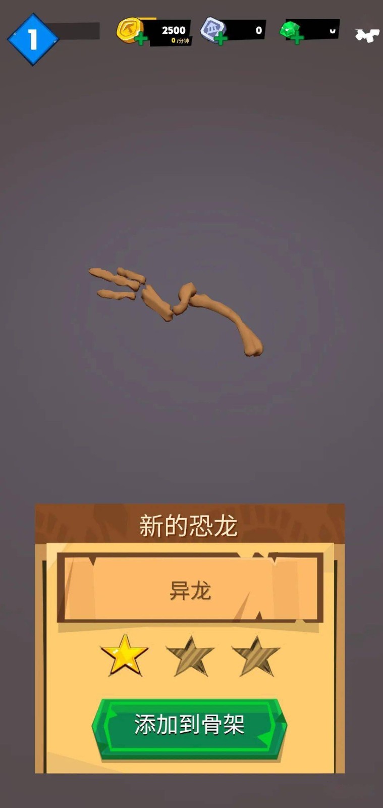 2.不断挖掘新的恐龙骨骼,完成玩整体的恐龙化石,在恐龙博物馆中建立自己的侏罗纪公园。