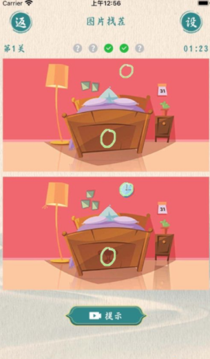 2、两张图片存在5处细微的差异,可能是颜色,可能是一个图案,让你眼花缭乱,考验细致入微的观察能力;