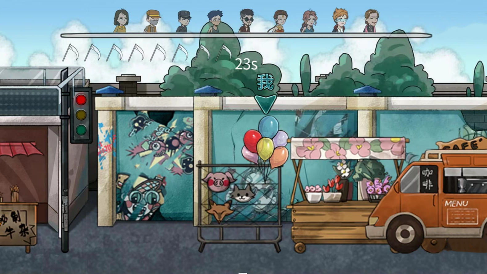 3.在规定的时间内进行躲避来保证自己的生命安全,完成各项挑战,顺利到达下一关。