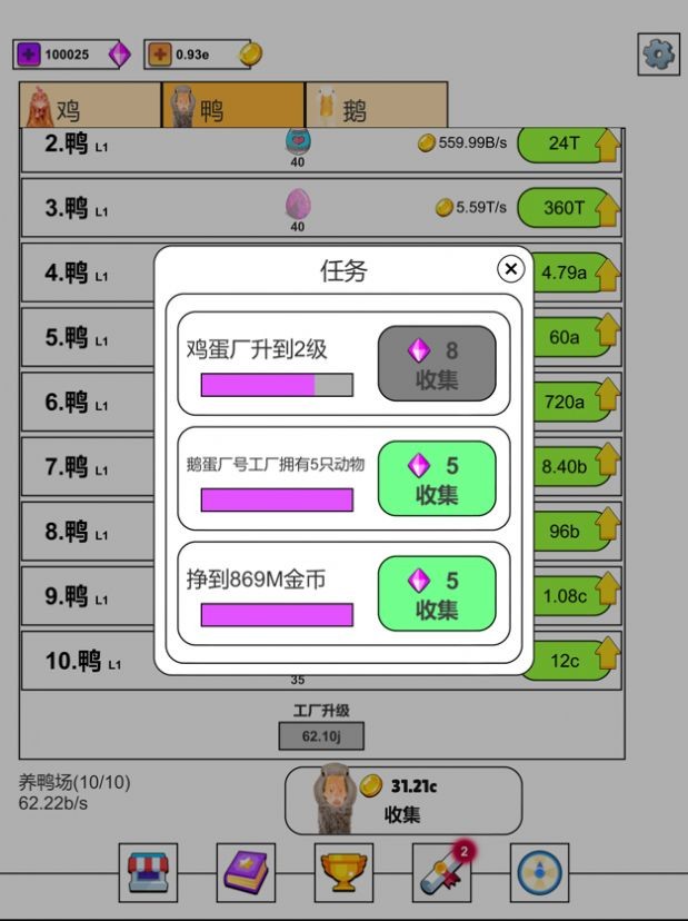 放置鸡鸭鹅,一款模拟养殖场游戏。放置鸡鸭鹅游戏中玩家可以在这里打造一个全新的养殖场,你需要根据自己的本金,进价更多的鸡鸭鹅,然后不断养殖,提高自己的收益。很多的天气和道具都是对你之后的发展有帮助的。想玩的朋友就来试试吧。