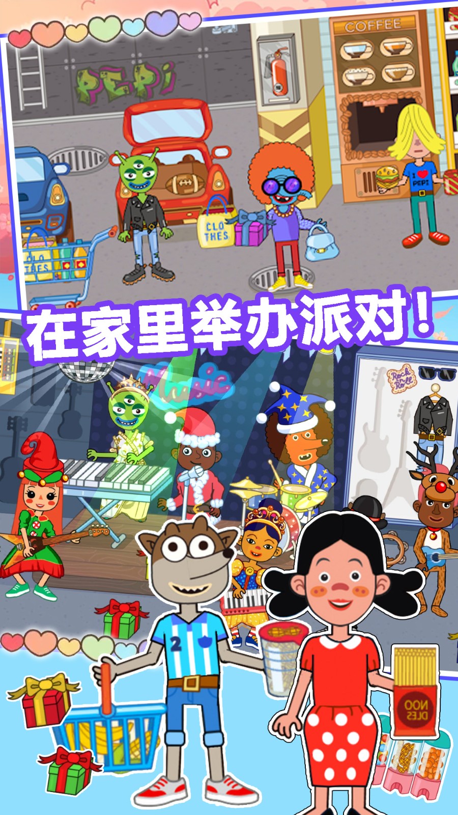 樱花小镇购物商店是一款自由度非常高的休闲类型的游戏。在樱花小镇购物商店中,玩家将度过非常愉快的游戏生活,可以结识世界各地的好友,还能参加各种游戏活动,海量服装等待你的选择,成为整个小镇的主角吧。
