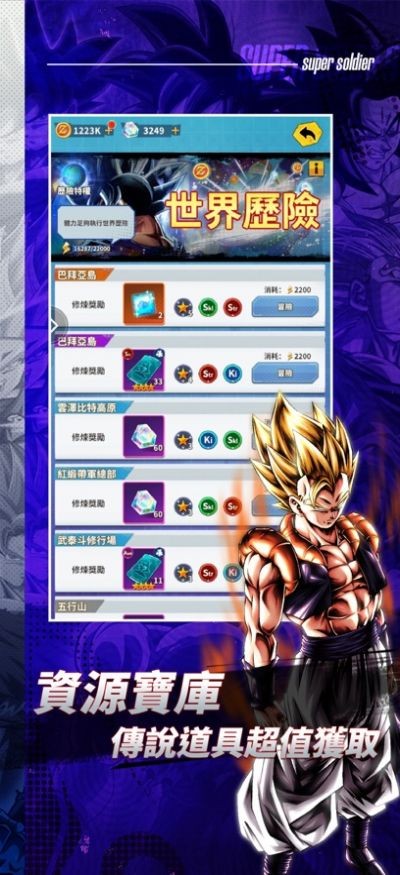 1、多个龙珠Z战士角色,高清画质和流畅的动作设计,展现角色的强大力量。