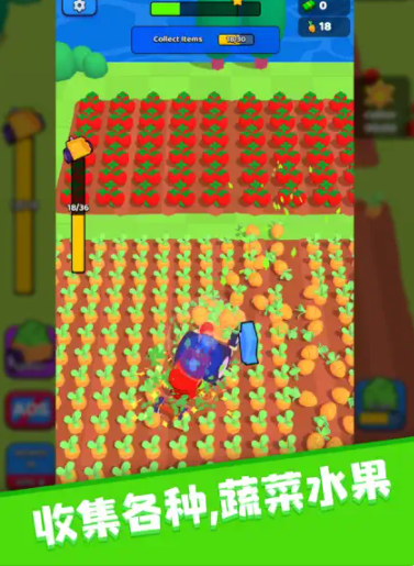 1.玩家将成为一个愉快的农场主,解锁各种工具,让自己变得更加的悠闲愉快。