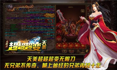 天美超超超变传奇是一款有多种游戏玩法的超变类型的传奇游戏。在天美超超超变传奇中,玩家可以叫上曾经的兄弟再战十年,没有暗坑就是爽,简单粗暴打怪升级,全新版本,不变的热情,感受打怪的刺激瞬间吧!